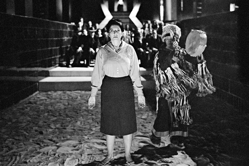 Все это необходимо, чтобы составить персональный маршрут по выставке – ориентироваться помогает специальный гаджет дауфон. Девайс направляет по разным ивентам: от показов фильмов, прослушивания лекций и участия в конференциях до шаманского ритуала, художественного перформанса или научного эксперимента. Можете игнорировать советы, но тогда поход по выставке рискует обернуться бесконечным блужданием лабиринтами театра. Максимальный экспириенс возможно получить только, если следовать указаниям гида. Фильмы транслируются в разных залах в случайное время, без возможности отмотать назад или вперед, и даже волонтеры проекта не знают точного расписания сеансов.